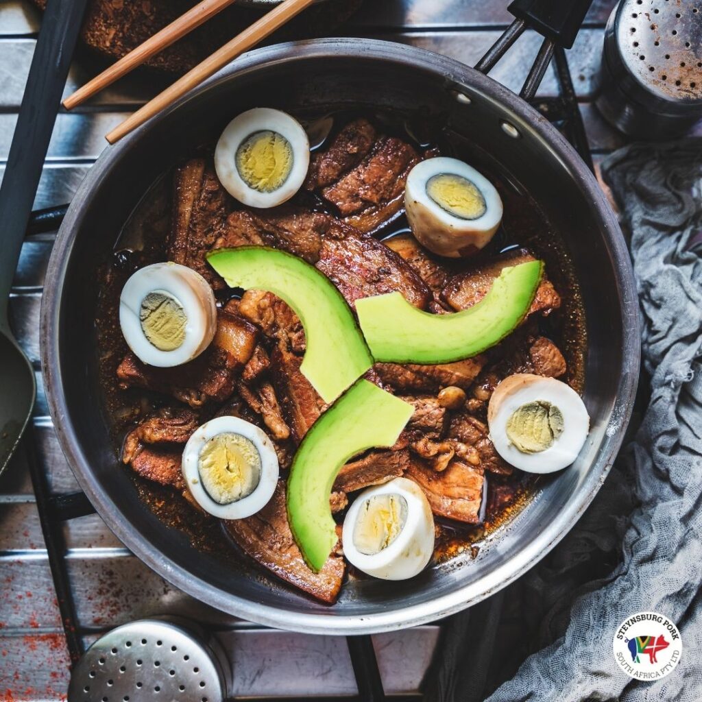 Fry the Steynsburg Pork bacon in a pan until perfectly crispy. Let it drain on a paper towel, then crumble or slice it.
