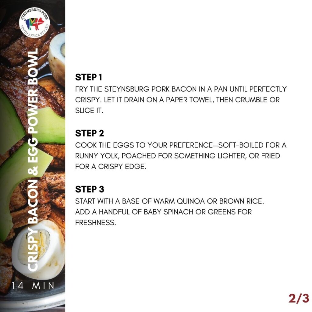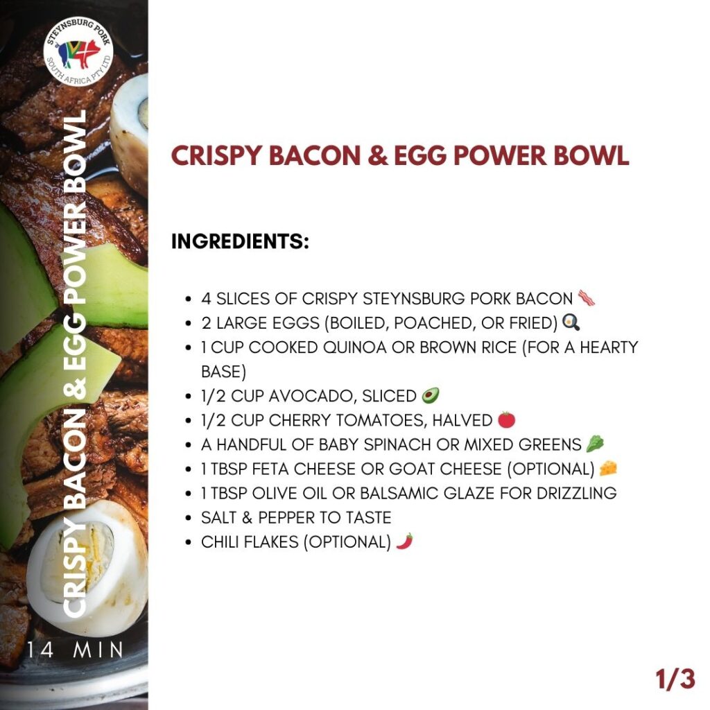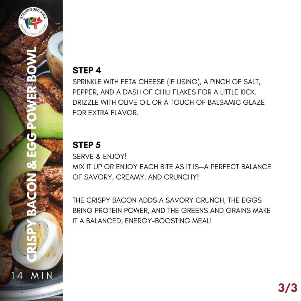 The crispy bacon adds a savory crunch, the eggs bring protein power, and the greens and grains make it a balanced, energy-boosting meal!