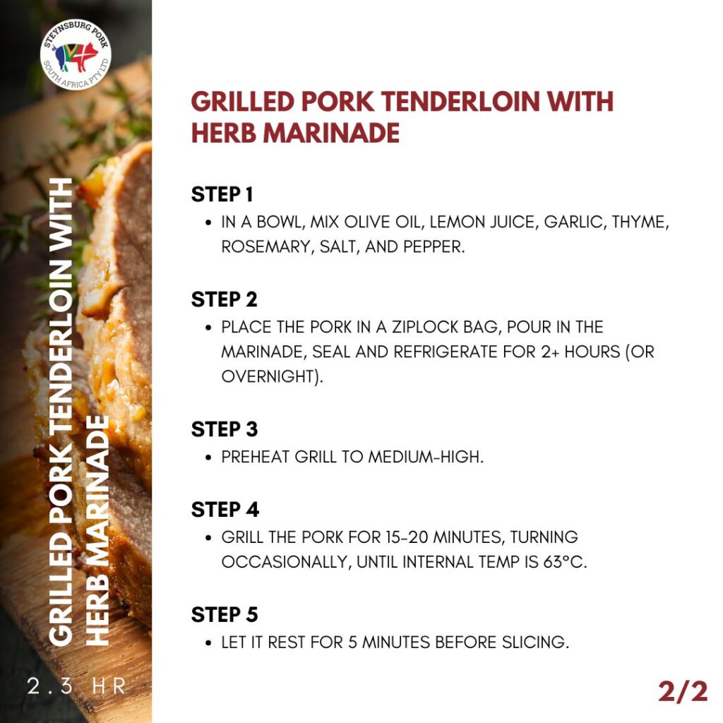 Grill the pork for 15–20 minutes, turning occasionally, until internal temp is 63°C.