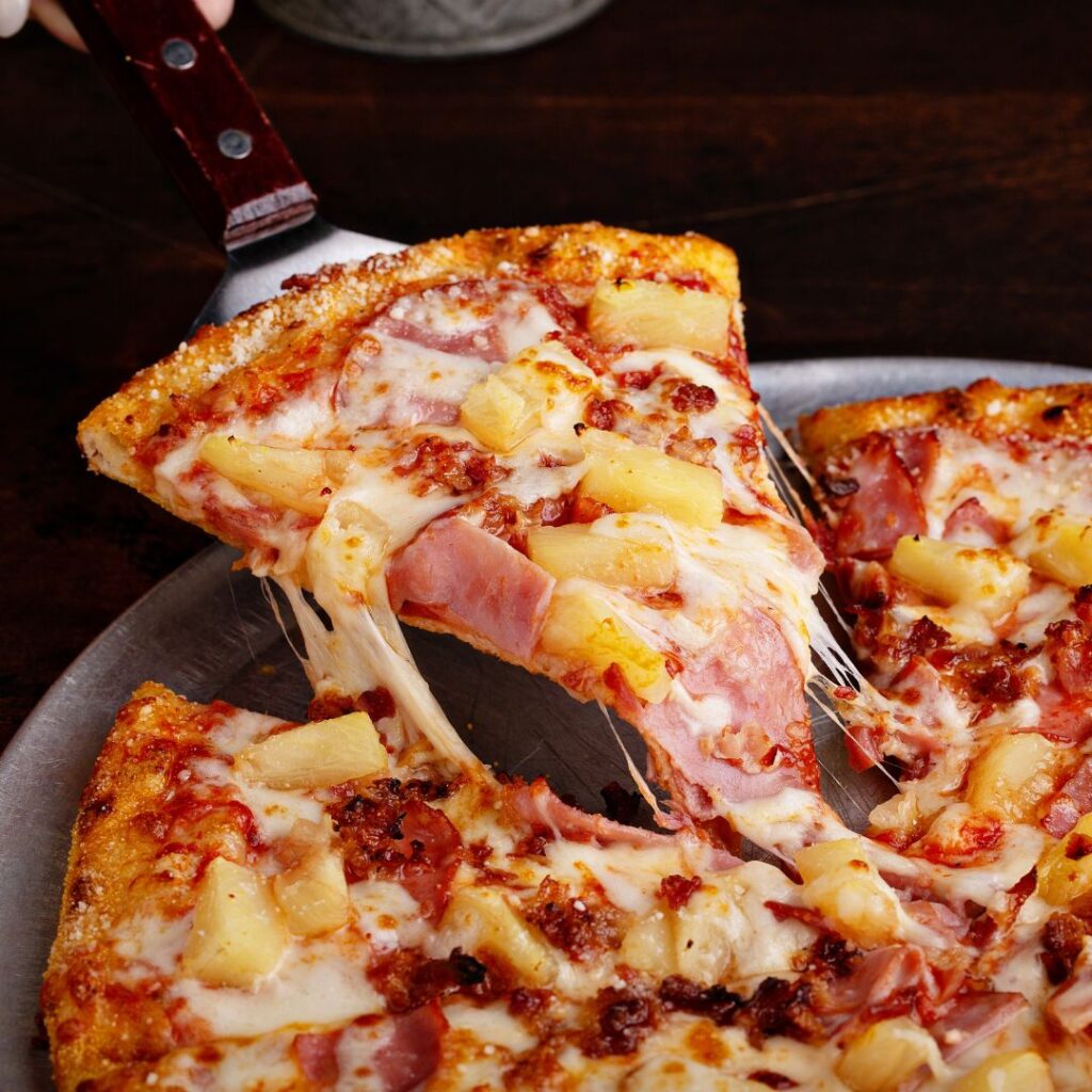 Sprinkle mozzarella, pulled pork, and pineapple evenly.