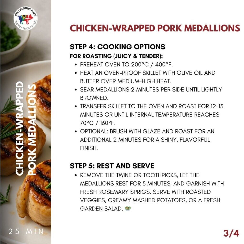 Remove the twine or toothpicks, let the medallions rest for 5 minutes, and garnish with fresh rosemary sprigs. Serve with roasted veggies, creamy mashed potatoes, or a fresh garden salad. 🥗