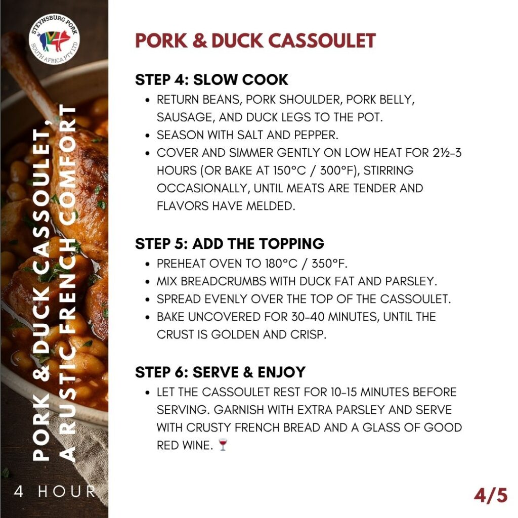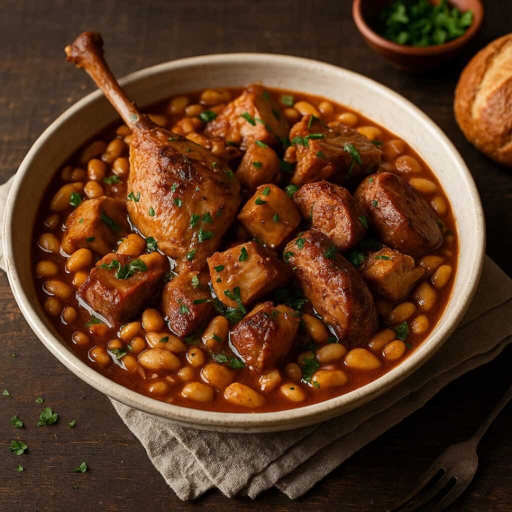 • Let the cassoulet rest for 10–15 minutes before serving. Garnish with extra parsley and serve with crusty French bread and a glass of good red wine. 🍷